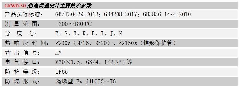 GKWD-50熱電偶溫度計(jì)是利用熱電效應(yīng)為原理測(cè)量多種生產(chǎn)過程中從-200~1800℃范圍內(nèi)的液體介質(zhì)、氣體介質(zhì)、蒸汽以及固體表面等的溫度,現(xiàn)已成為中高溫溫度遠(yuǎn)傳儀表的理想選擇。