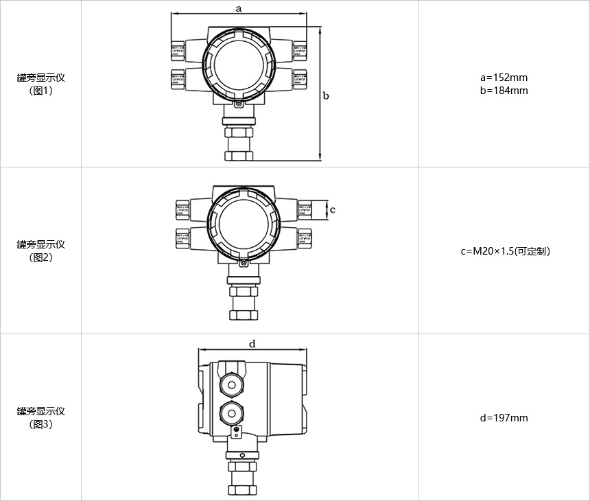 可選配多點平均溫度計、壓力變送器等溫度、壓力儀表實現(xiàn)溫度、壓力值的罐下顯示