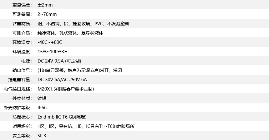 非插入式測(cè)量,不受介質(zhì)的壓力、溫度、比重、有無(wú)腐蝕性影響適用性廣