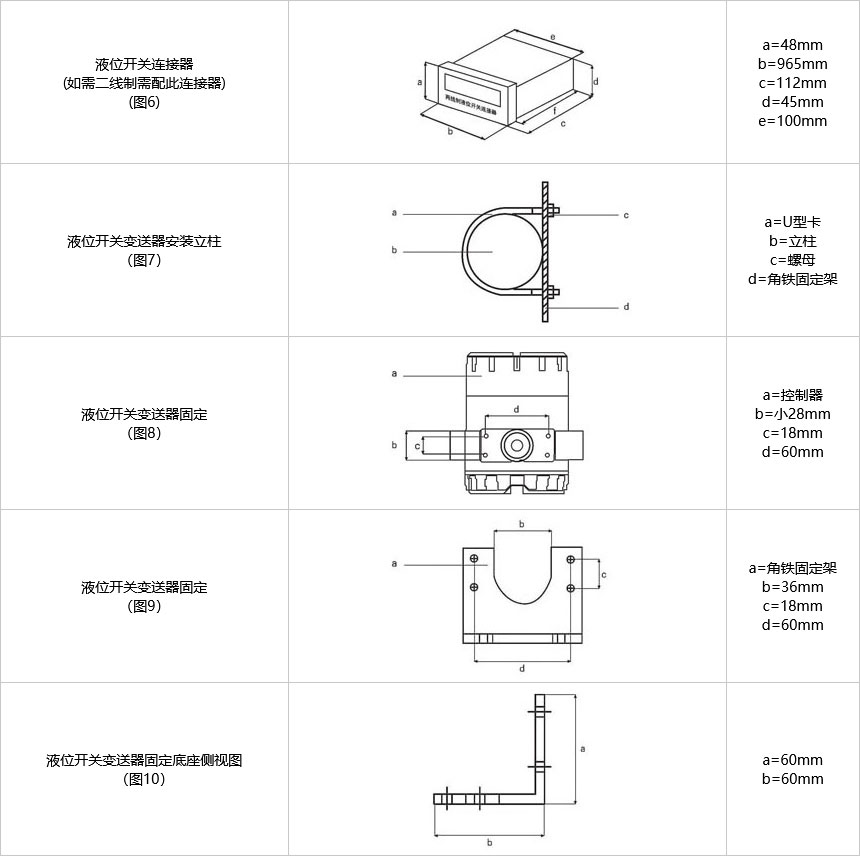 液位開關(guān)變送器固定參照?qǐng)D5、圖7、圖8、圖9、圖10